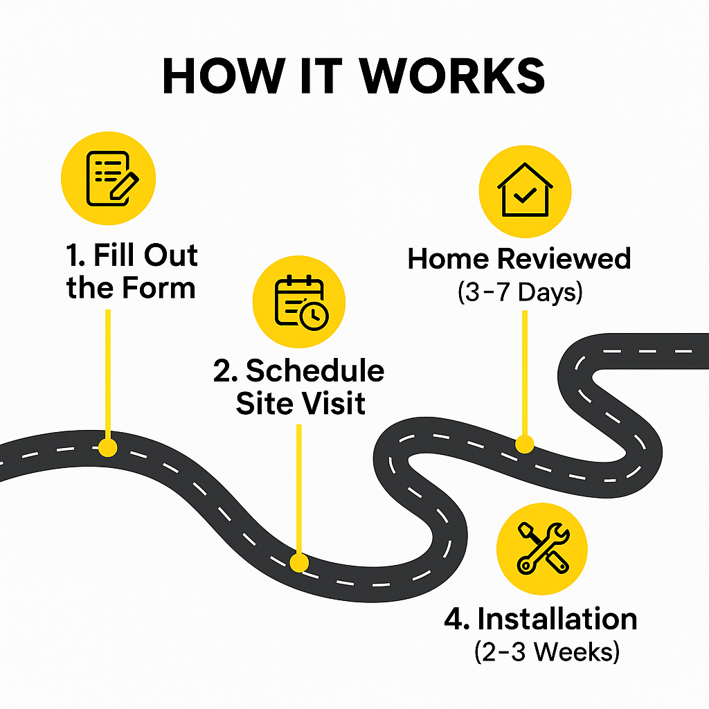 (La revisión tarda entre 3 y 7 días. La instalación generalmente ocurre dentro de 2–3 semanas después de la aprobación.) -